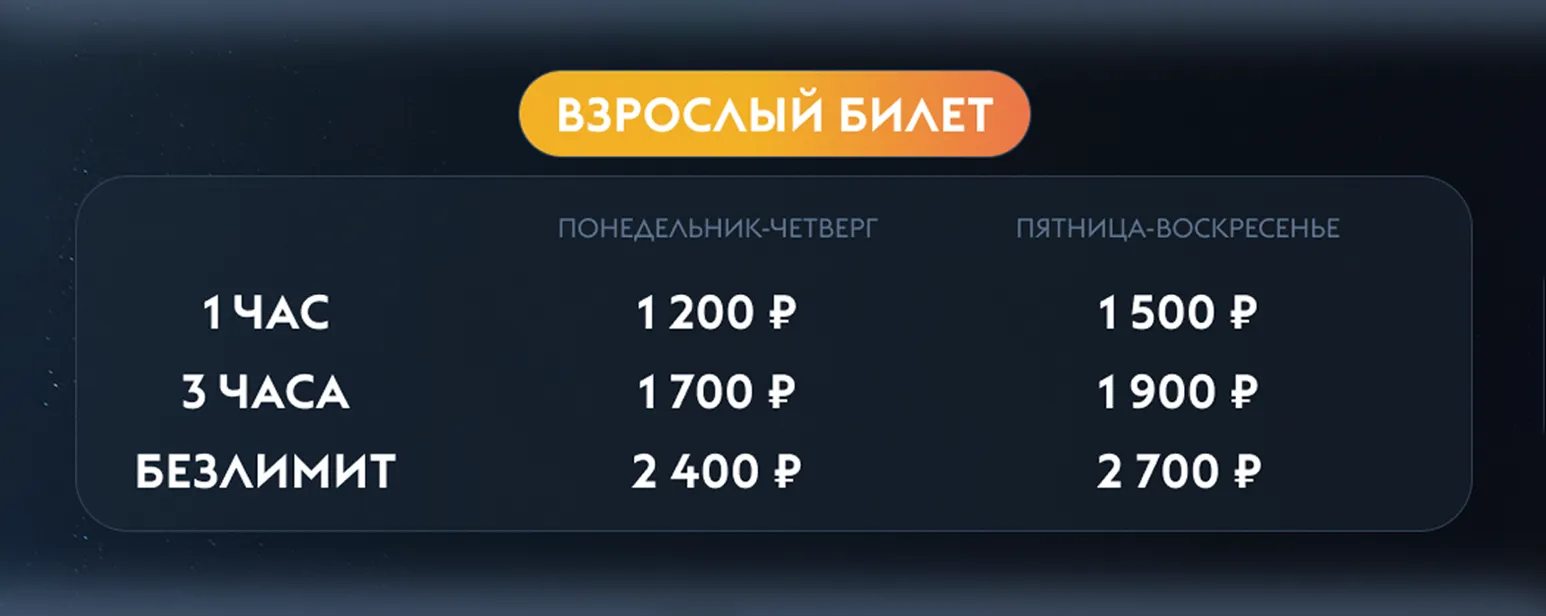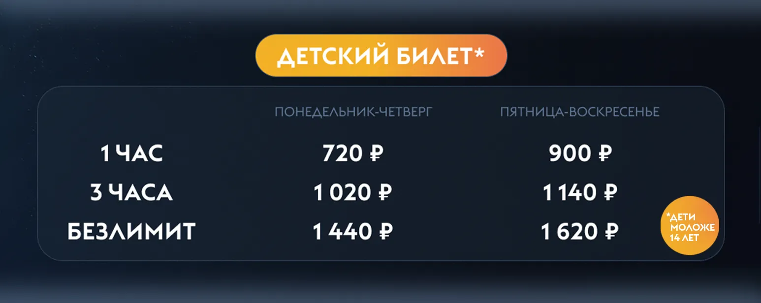 Напомним, что на сегодняшний день к покупке доступны только билеты формата «Безлимит» категорий «Взрослый» и «Детский» (для детей от 6 до 14 лет. Дети до 6 лет посещают комплекс бесплатно).